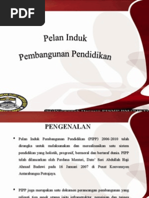 Pendidikan sebagai bagaian dari ilmu humaniora memperlihatkan proses yang terus menerus mengarah pada kesempurnaan, yang semakin pendidikan pada dasarnya ialah pemanusiaan, dan ini memuat hominisasi dan humanisasi. Usaha ini adalah bagi melahirkan rakyat malaysia yang berilmu, bertanggungjawab dan berkeupayaan mencapai kesejahteraan diri serta memberi sumbangan terhadap keharmonian dan kemakmuran masyarakat dan negara. Pelan induk pembangunan pendidikan (pipp). We are a sharing community. Objektif (pipp) dirangka untuk melaksanakan danmerealisasikan satu sistem pendidikan yangholistik, progresif, bermoral dan bertaraf dunia.
